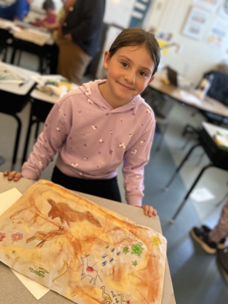 Once again this year we were able to provide an artist for an artist in residency program at Superior Central Elementary for the 2024/25 school year. This program involved an artist collaborating with a classroom teacher for 12 weeks (2 classes per week) of art education with the theme: How does our environment influence art makers? This residency was artist taught for two hours per week in two 4th grade classrooms, a 3rd and a 5th grade classroom. The artist explored questions of her personal art inspiration surrounding certain cultural circumstances in the history of human art creation and helped students imagine the kinds of art might make if they had lived at that time.